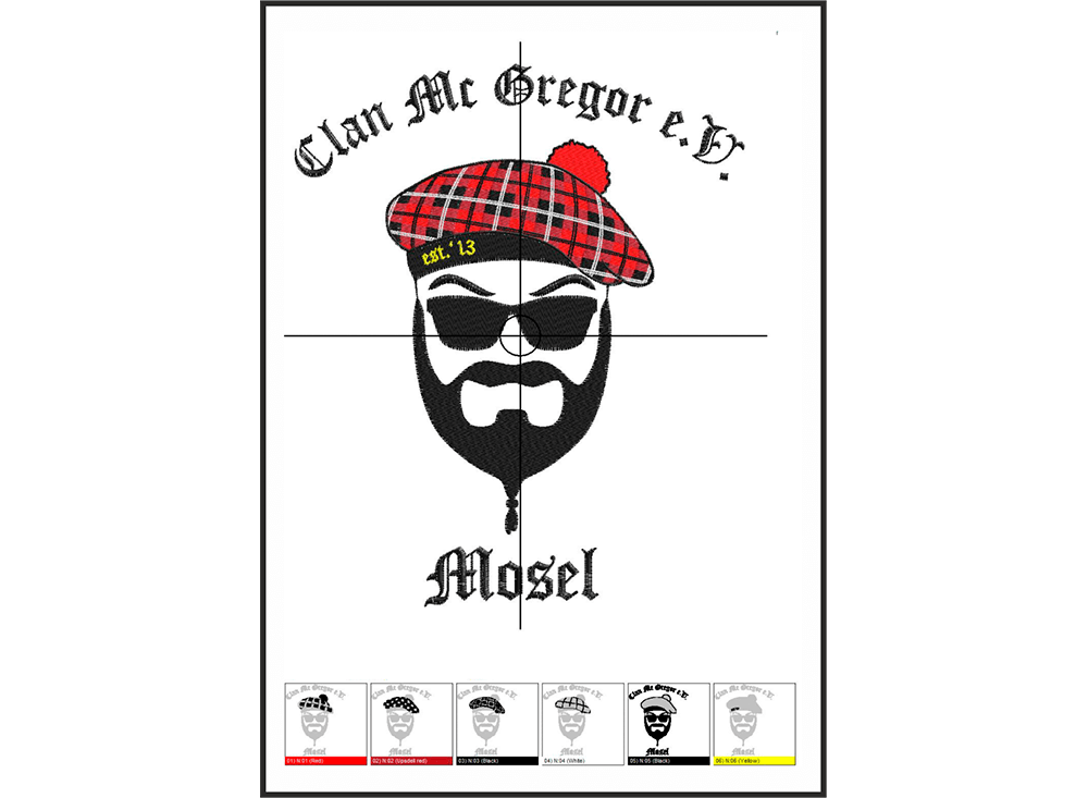 Wir erstellen die Sickkarten individuell, exakt dem Motiv und dem Material angepasst. Je nach Textilmaterial und Beanspruchung sticken wir mit verschiedenen Garnen, Vliesen und Farben.